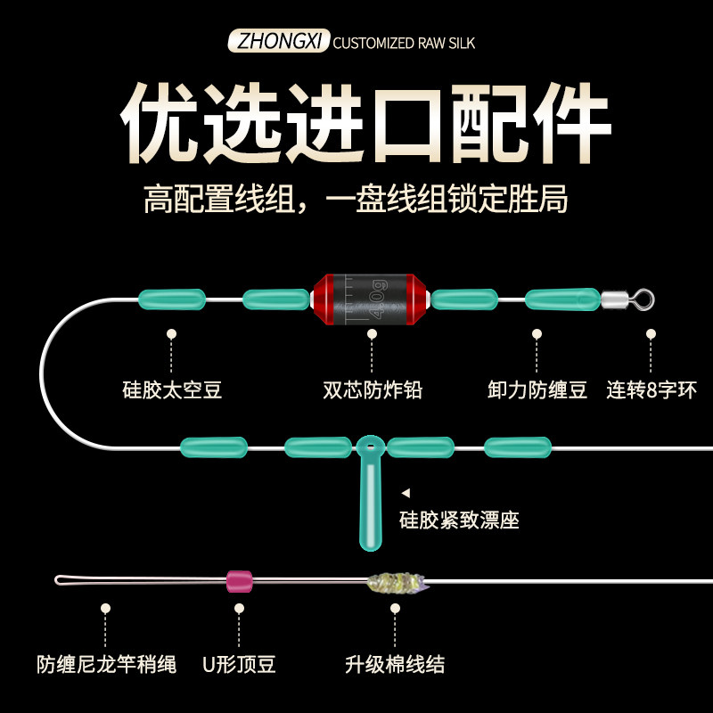 China-West Fishing Line Black Pit Tied finished fishing line Main Group Set Full Set of Japanese Imported Ultra Soft