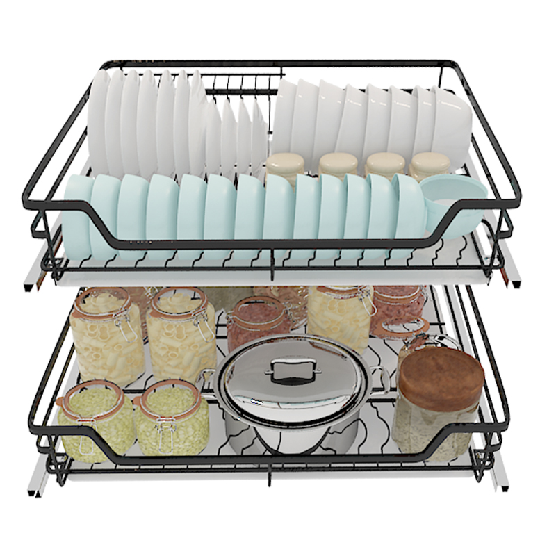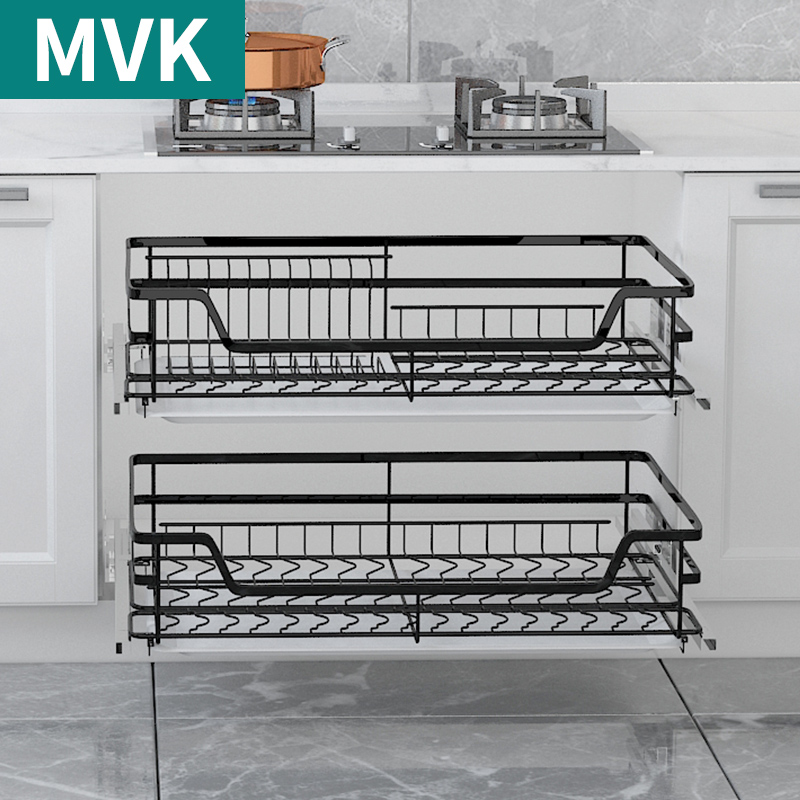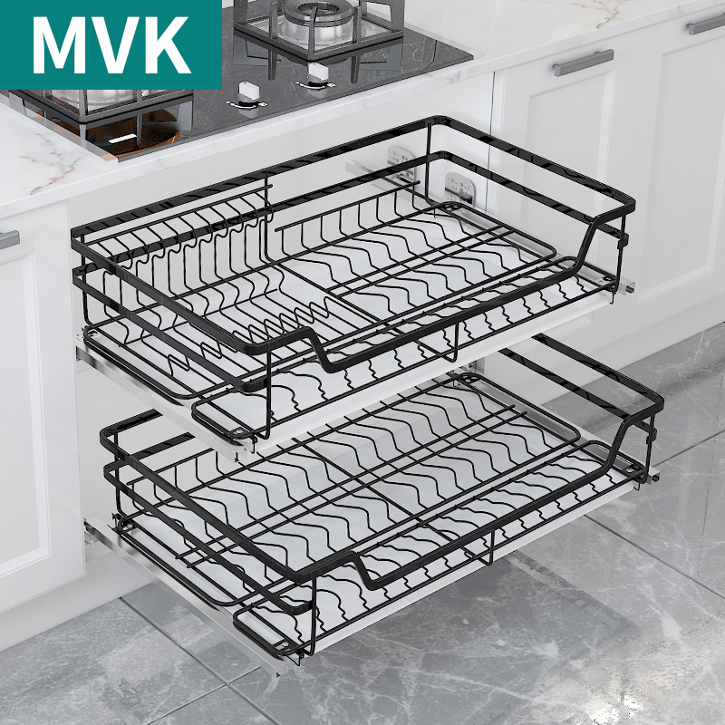 MVK pull basket kitchen overall cabinet 304 stainless steel bowl rack overall cabinet bowl basket drawer buffer seasoning pull basket built-in