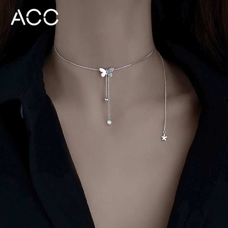 ACC butterfly necklace 925 sterling silver women's 2022 new clavicle chain advanced design necklace light luxury niche temperament