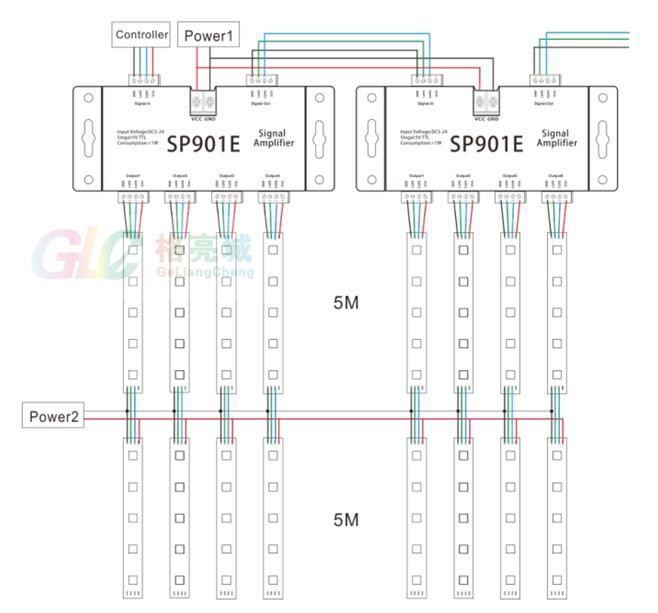 LED Magic Color 8-Way Amplifier Full-Rehearsal SPI Signal TTL Splitter multiple Sync 1 Way into 8 out of SP901E