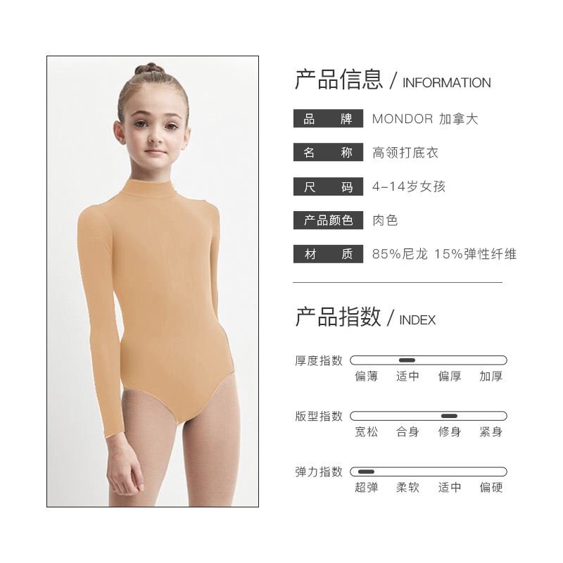 Canada MONDOR imported children's figure skating base coat adult flesh-colored turtleneck long-sleeved jumpsuit 217
