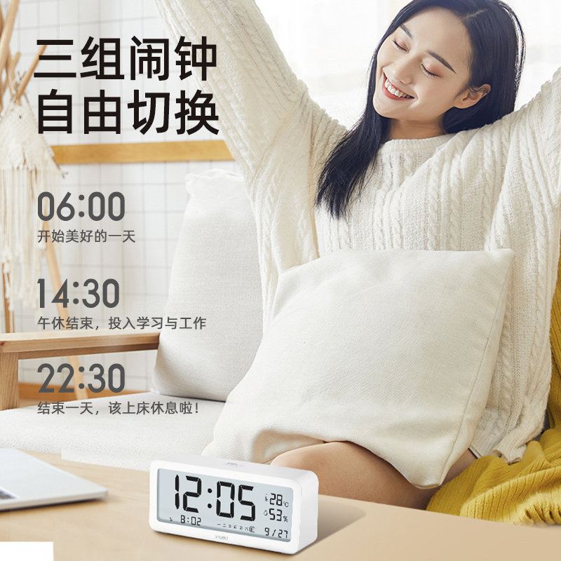Deli alarm clock students use smart dormitory bedside children's electronic clock to charge large volume luminous clock small alarm
