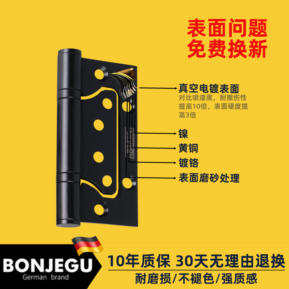 German Buntier fixed manganese titanium steel free of notch primary-secondary hinge hinged wooden door silenced silent frosted matt black sheet