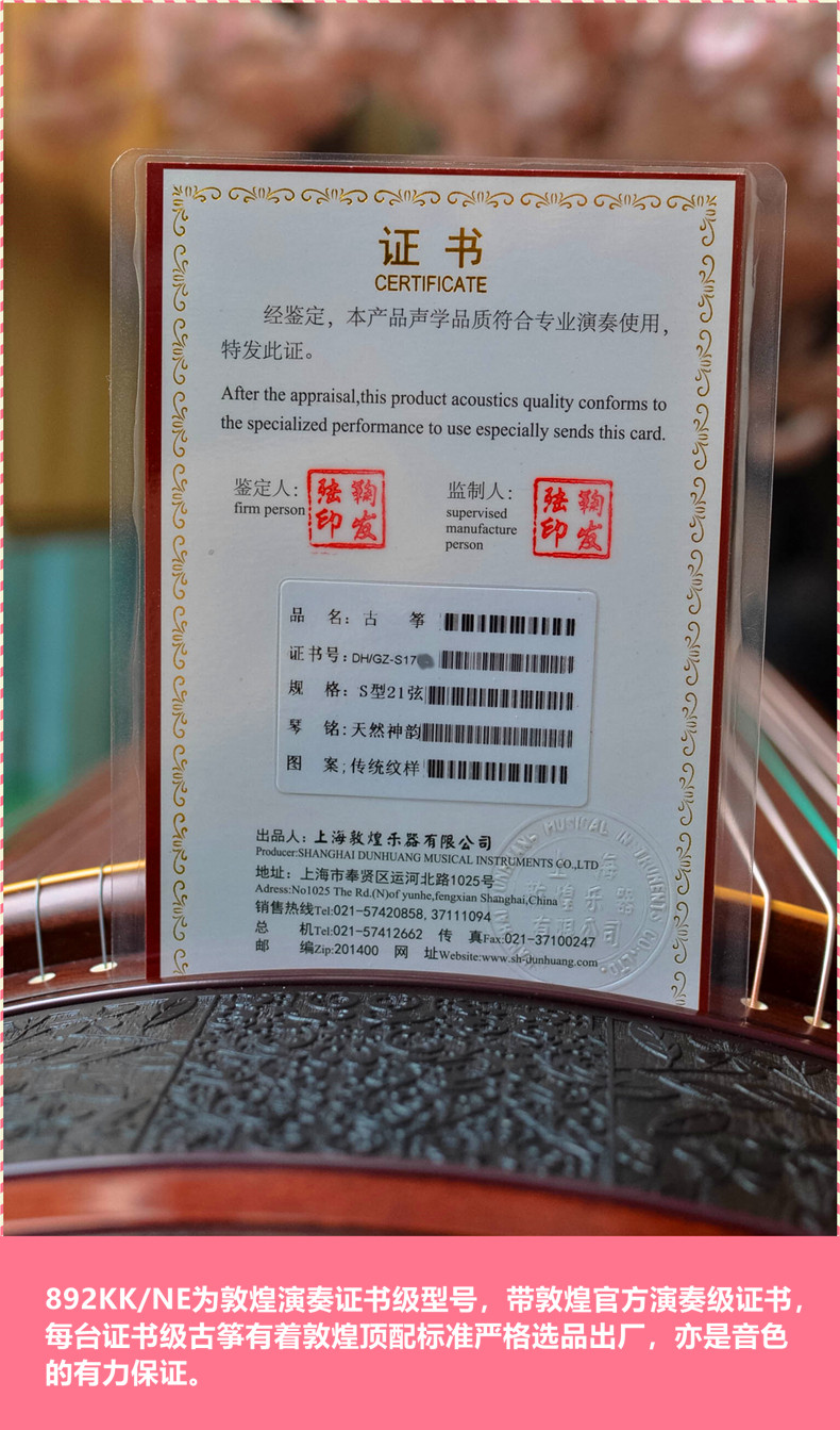 Dunhuang Certificate Grade 892KK JN Guzheng