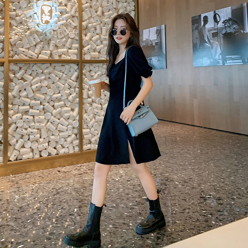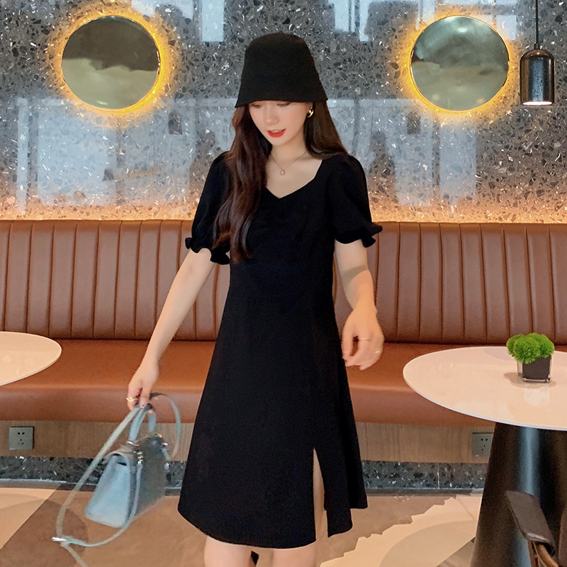 Blue Language Great Size Women's Dress Fat Sister Mm Fa Temperament Square Collar Foreign Dress 2022 Summer Loaded Loose of Flesh Fairy Skirt