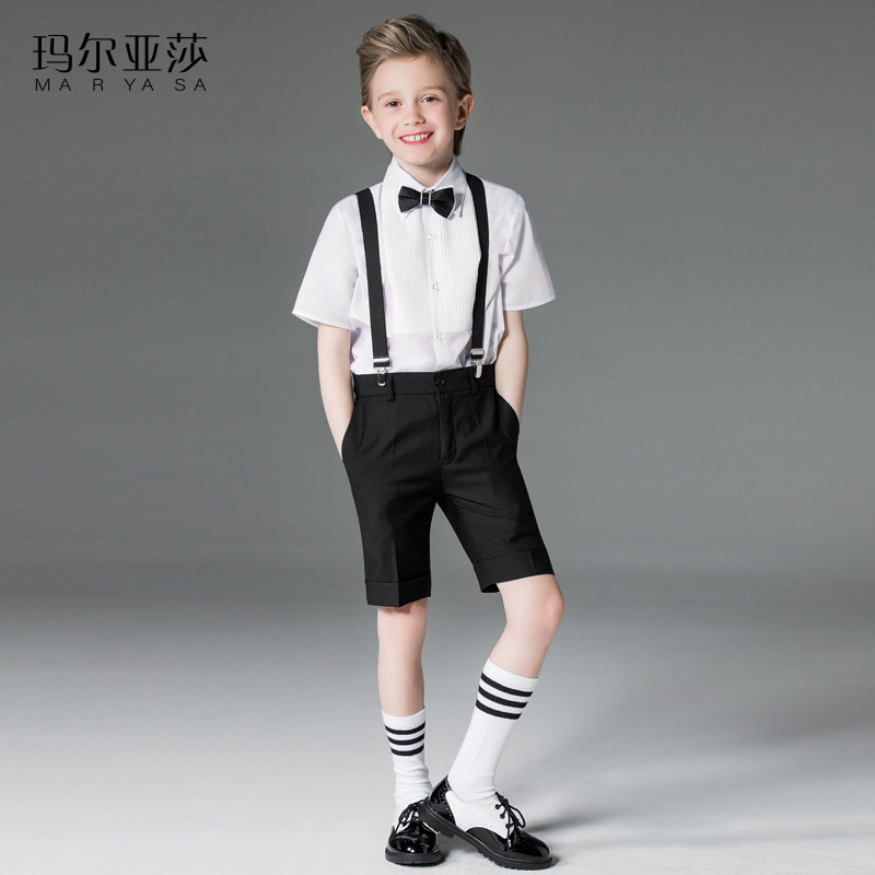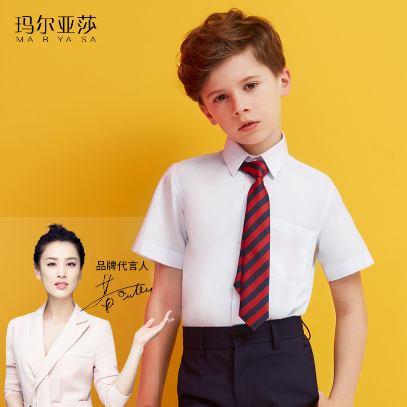 Maryasha children's white shirt short sleeve Inn style shirt for primary school pupils to host the performance out of the boy's white shirt
