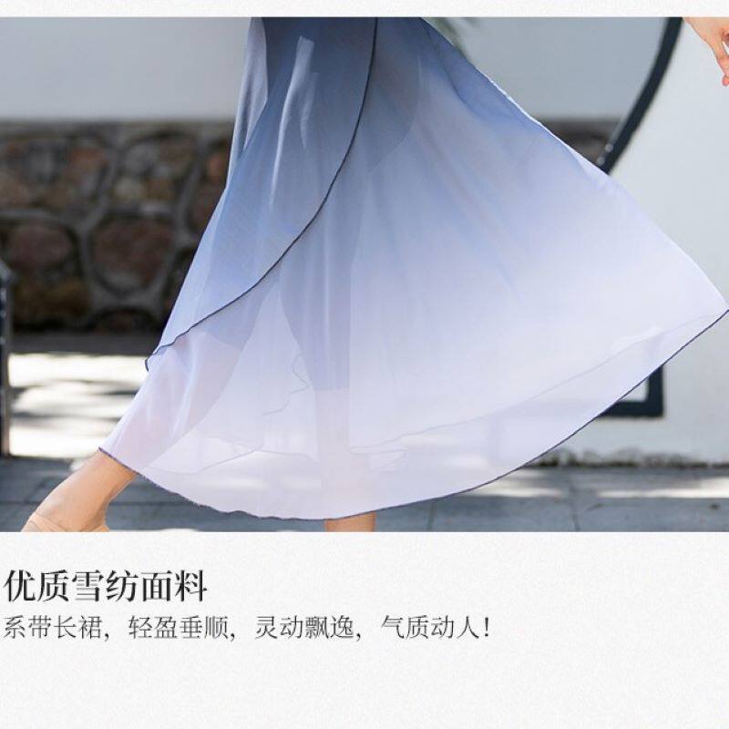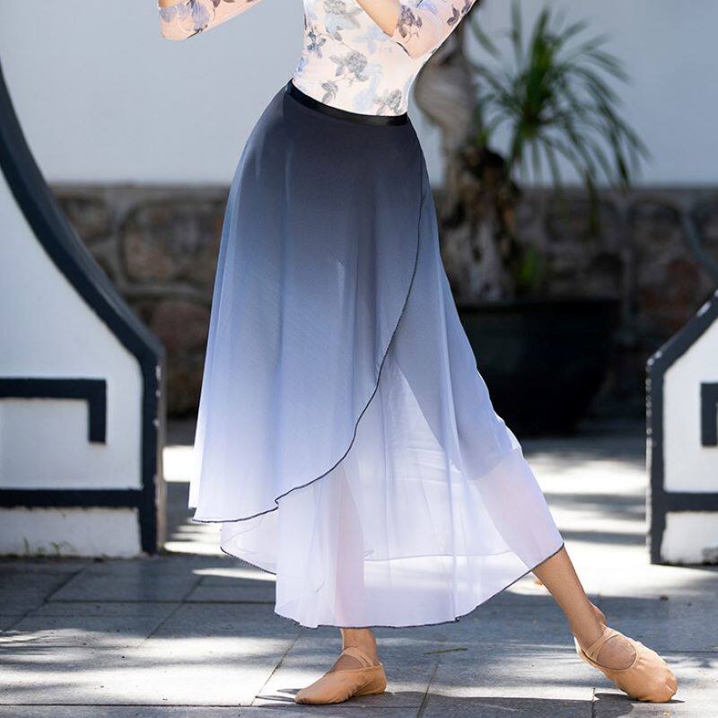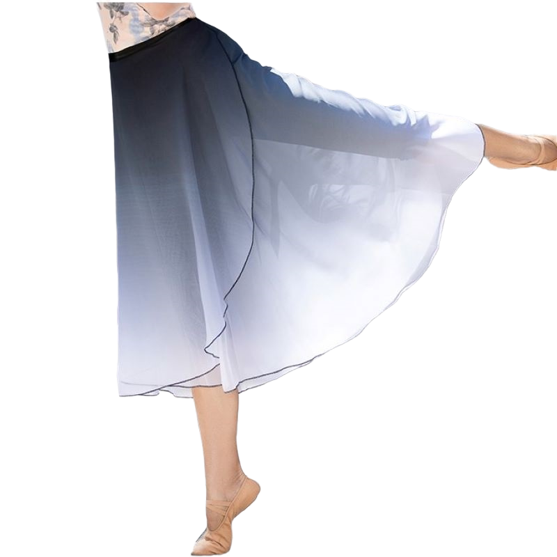 Classical dance skirt skirt elegant chiffon long skirt one piece apron black red gradient dance skirt gauze skirt