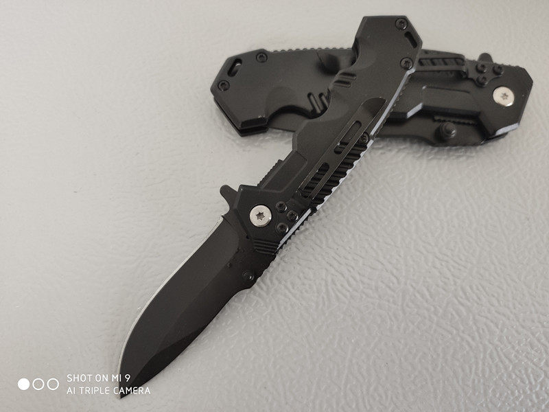 Folding knife speed open quenched ultra high hard knife Black tech anti-body knife folding knife integrated handle on car demand raw knife broken window cone