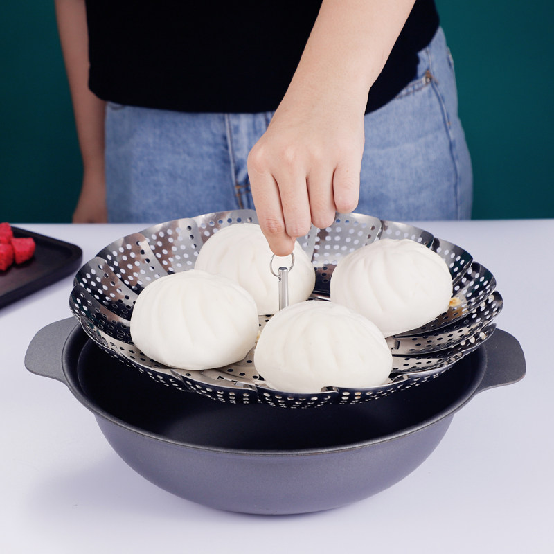 Stainless steel folding telescopic steamer household steamer grate small steamed buns multi-functional steamed bun steaming plate steaming rack artifact