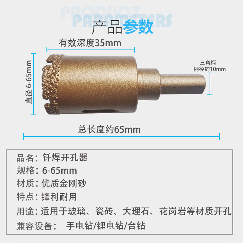 Brazing Marble Drilling Machine Diamond Sand Glass Tile Drilling Machine Triangular Handle Full Porcelain Stone Reaming Drill