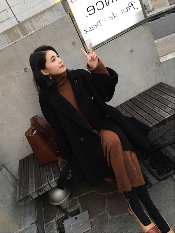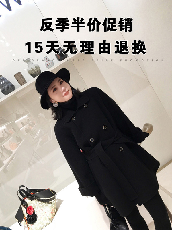 Anti-season halal bunker special price woman in double face Son Coat Temperament Black Small Sub Medium Long Version Fur Coats Women Tide