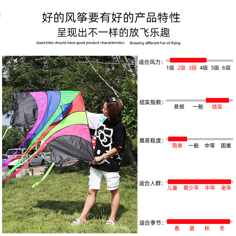 Weifang kite flying rainbow multi-long tail Children adult large breeze easy fly extra large super large giant feed wheel