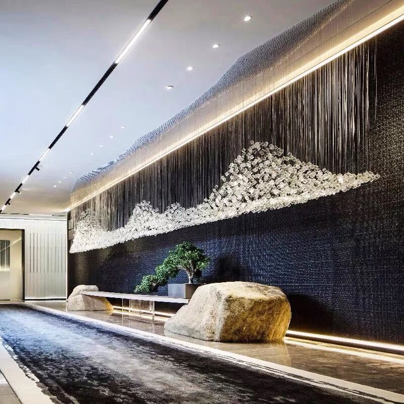 Customized large hotel lighting creative art glass sample house display center stone chandelier sand table shopping mall lobby engineering light