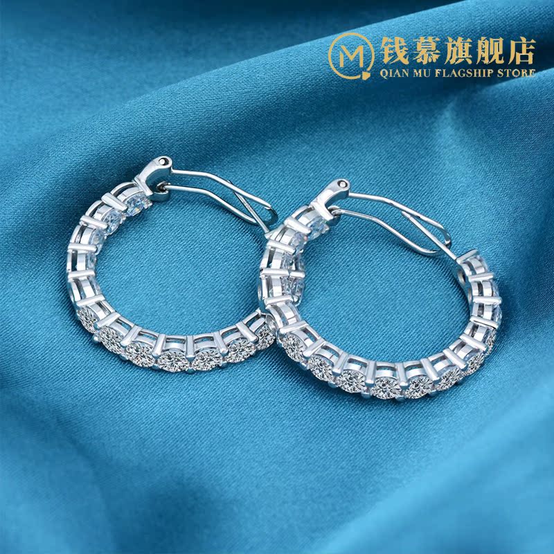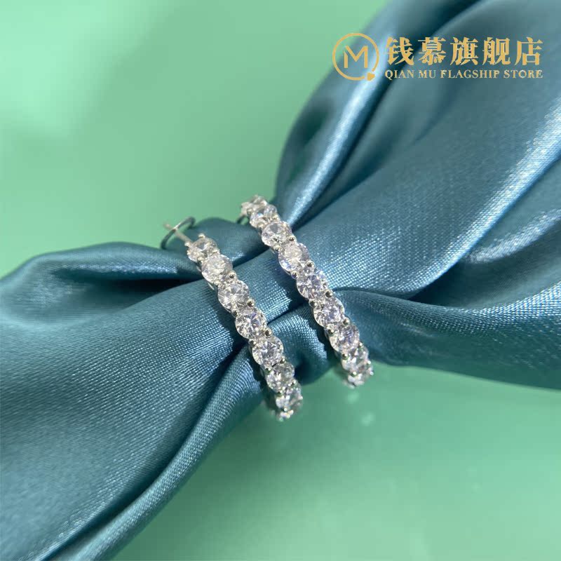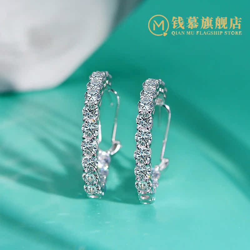 Qian Mu four-claw simulation diamond earrings S925 sterling silver women's simple single row diamond luxury atmosphere earrings ear jewelry