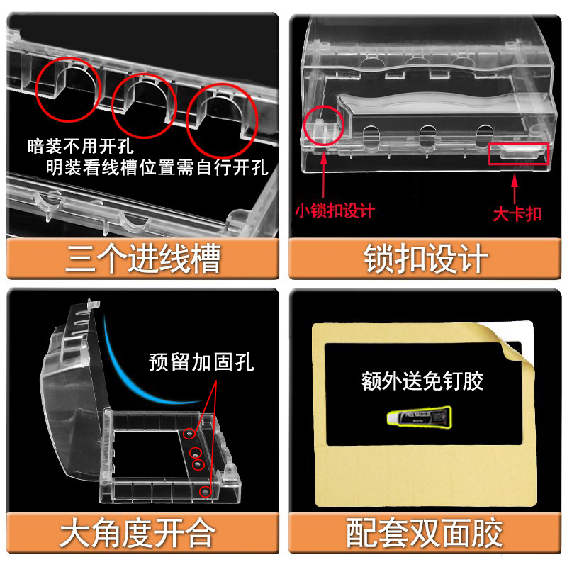 Dress 2 plus high self-adhesive 86 Type of switch socket Waterproof Case Transparent Bed Bag Free of perforated double-position splash-proof box