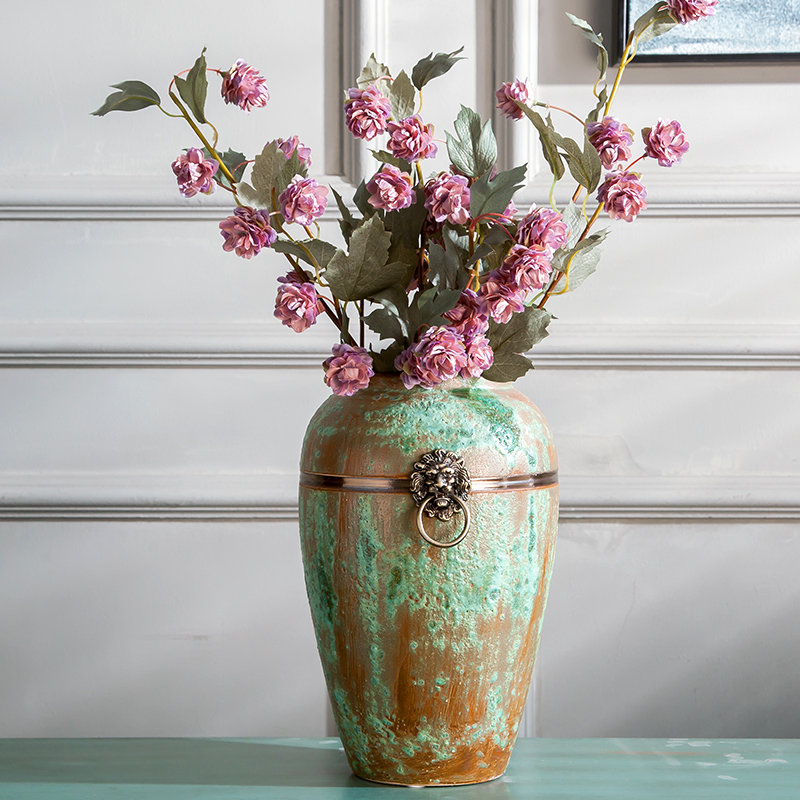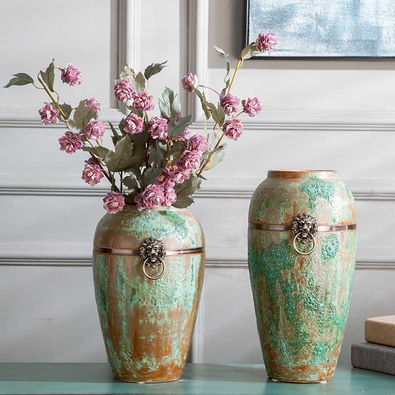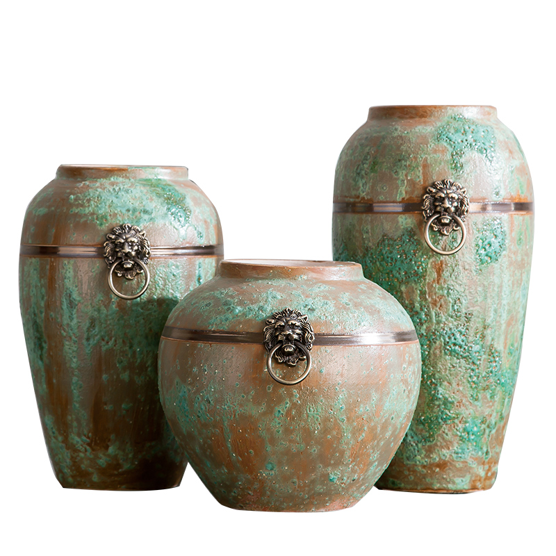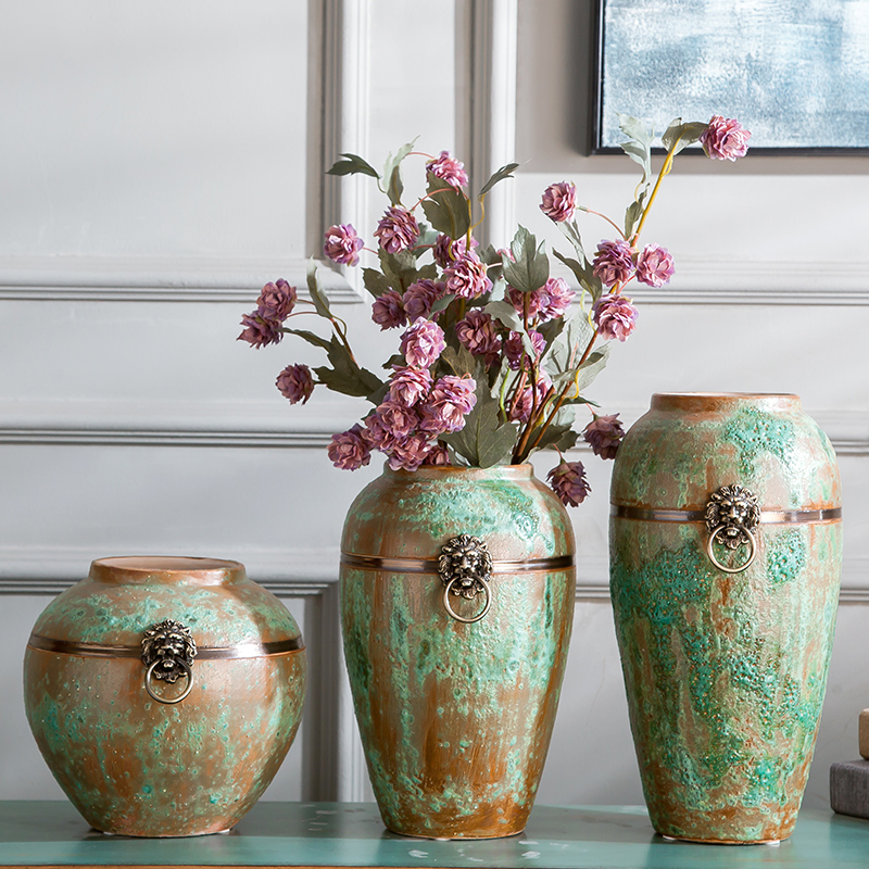 Jingdezhen ceramic floor-to-ceiling vase three-piece set of antique nostalgic stoneware clay pot hotel clubhouse soft decorative vase