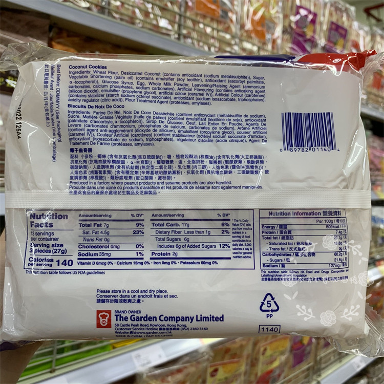 Hong Kong Hong Kong version of GARDEN Garton coconut ring 350g breakfast biscuits office afternoon tea snacks