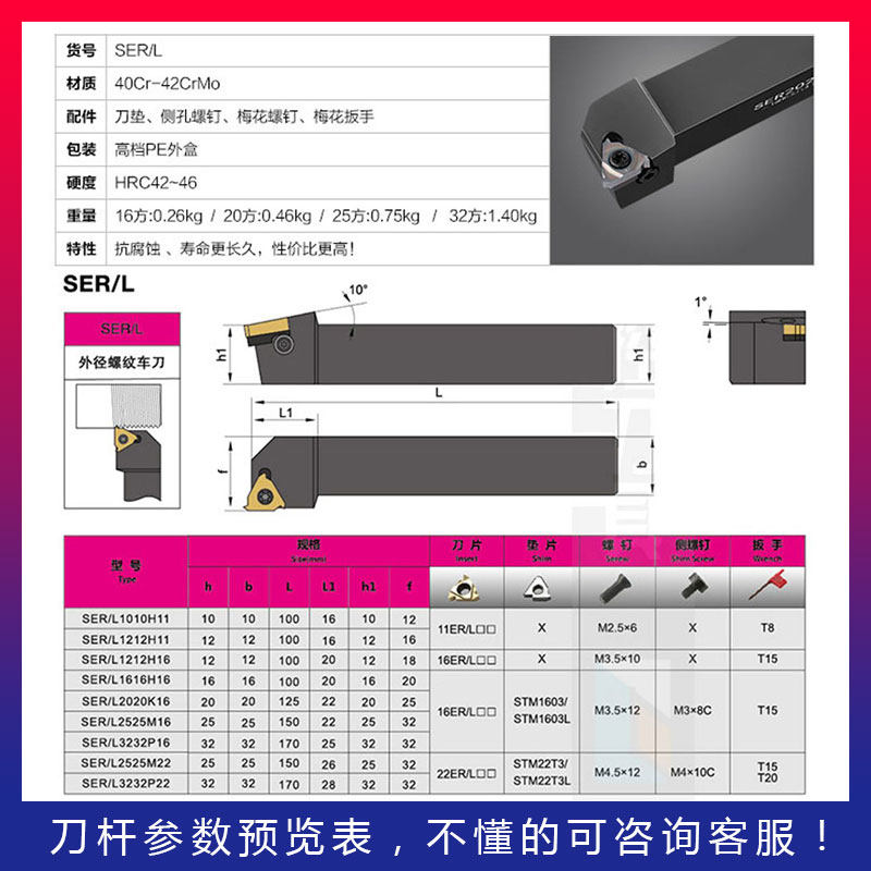 External thread Knife Rod Numerical Control Car Knife SER2020K16 2525M16 threaded cutter lathe pick a silk cutter bar-Taobao
