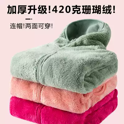 Double-sided coral fleece fleece jacket for men and women hooded autumn and winter plus velvet thickened warm fleece cardigan jacket