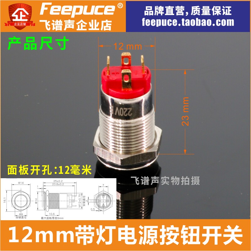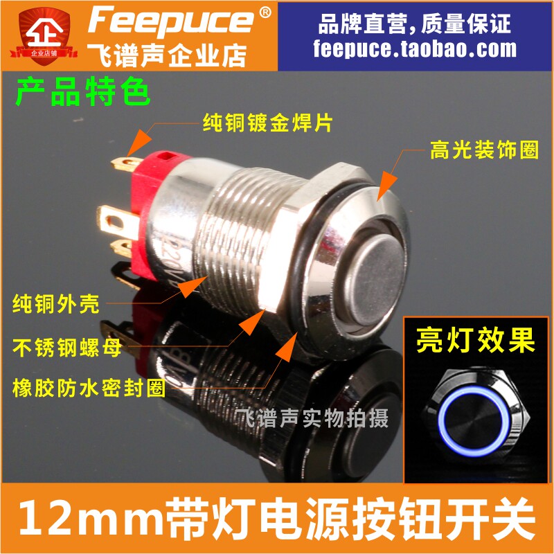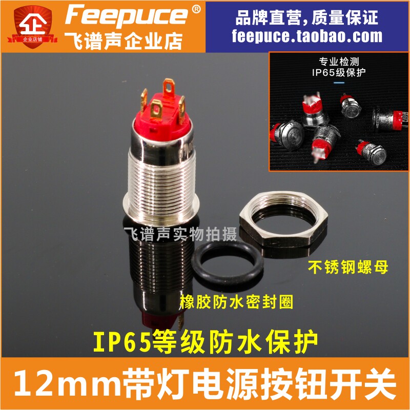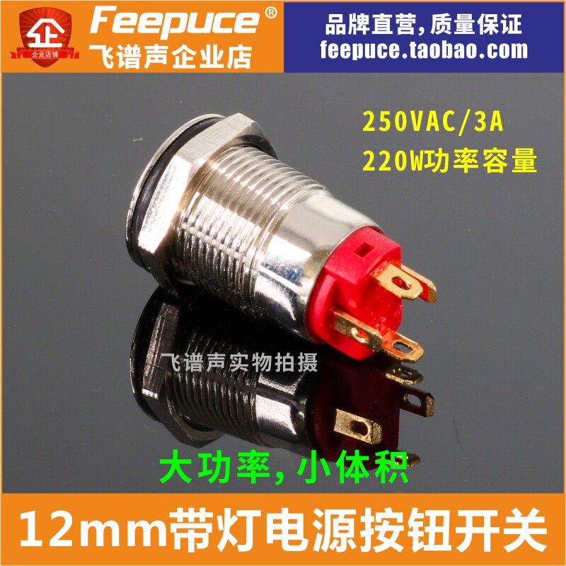 12mm metal button switch with lamp self-lock waterproof power start 220V flying spectrum sound power amplifier special