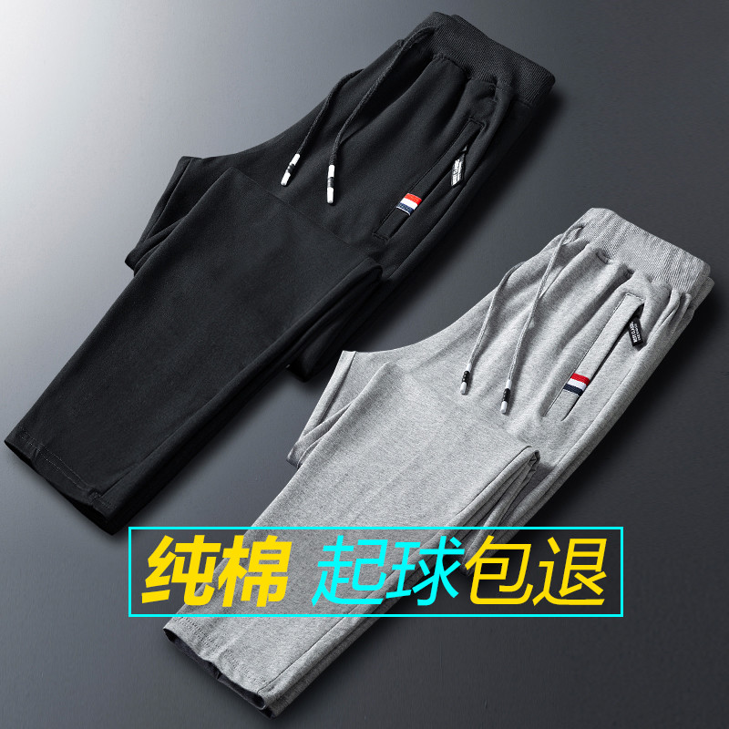 Pure cotton sports pants men's spring and autumn sweatpants loose straight knitted casual plus fat plus size men's long pants