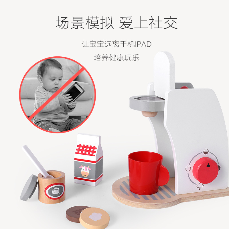 German children's simulation toaster coffee machine mixer play house kitchen toy set wooden girl