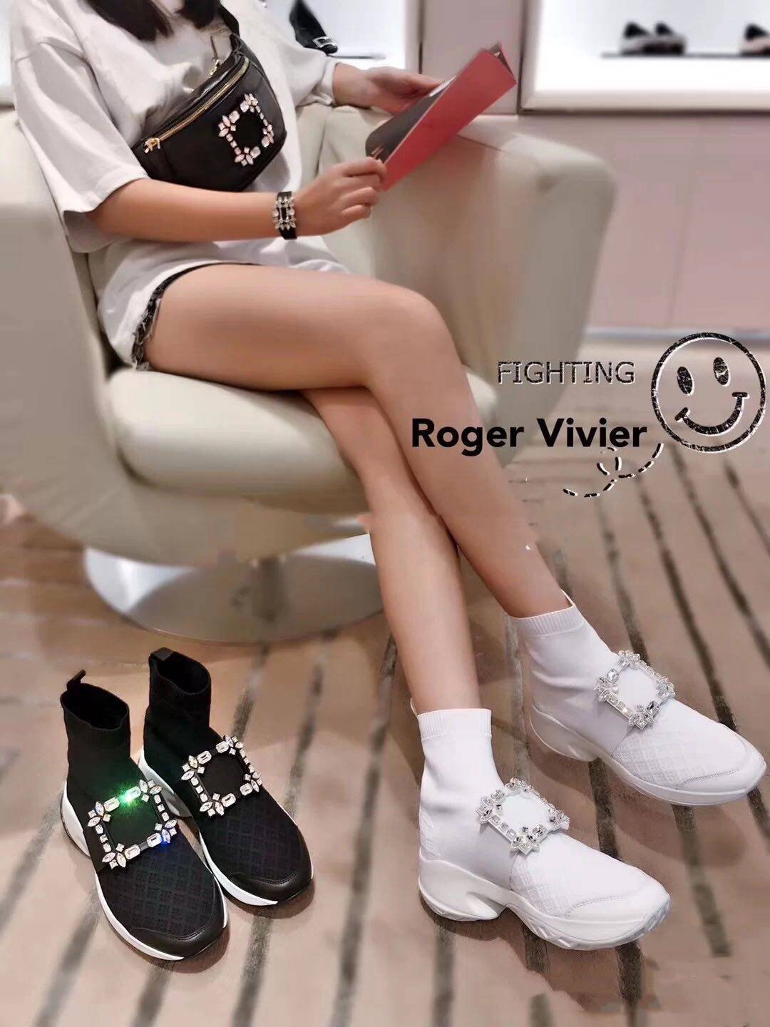 roger vivier black inner heightening socks casual shoes