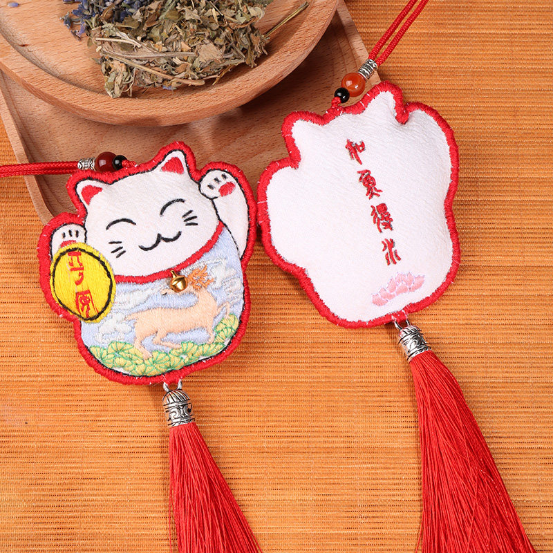 diy Lucky Cat embroidery peace Amulet Sachet Sachet Sachet Handmade material bag carry sachet Car hanging ornament