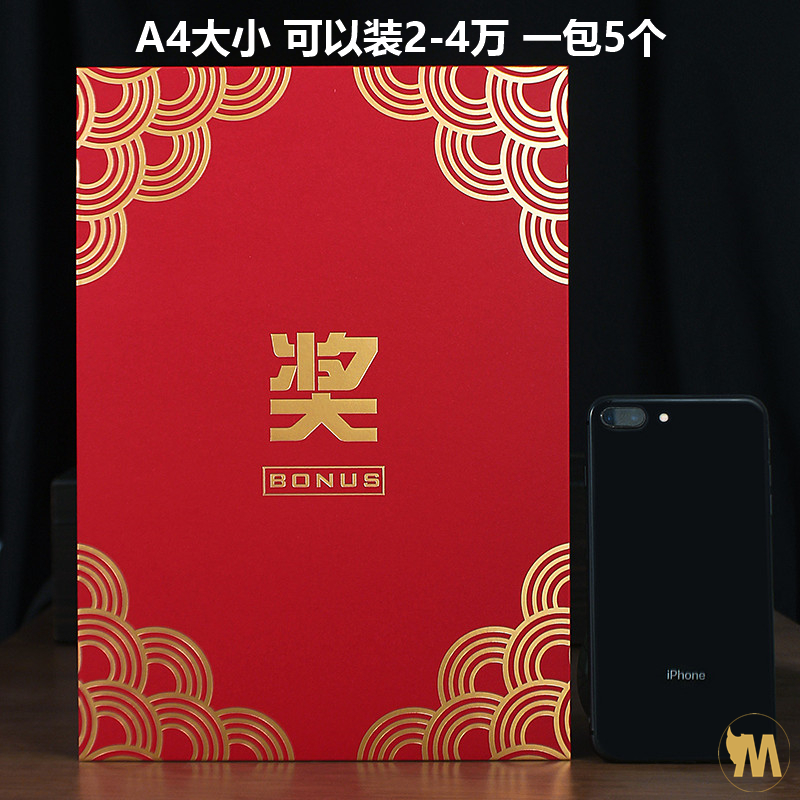 Small size 9*9CM, 100 yuan in half, 10 pieces, 1000 yuan 9*17 8CM, 100 yuan, 10 pieces, 10,000 yuan red envelope 11, 4*21 CM, 10 pieces, A4 super large