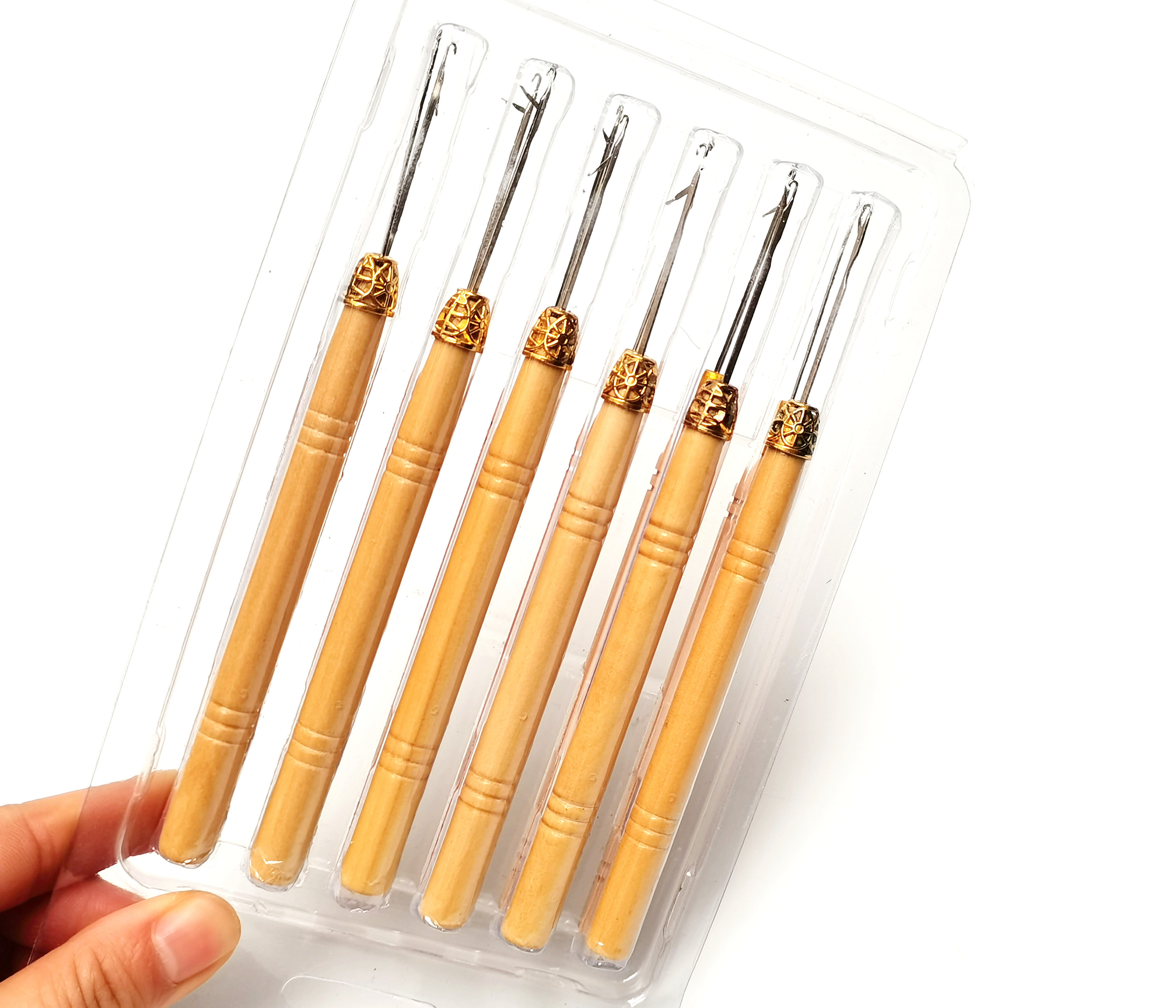 Distribute special wooden hook needle with tongue wig to disseminate hook needle tool