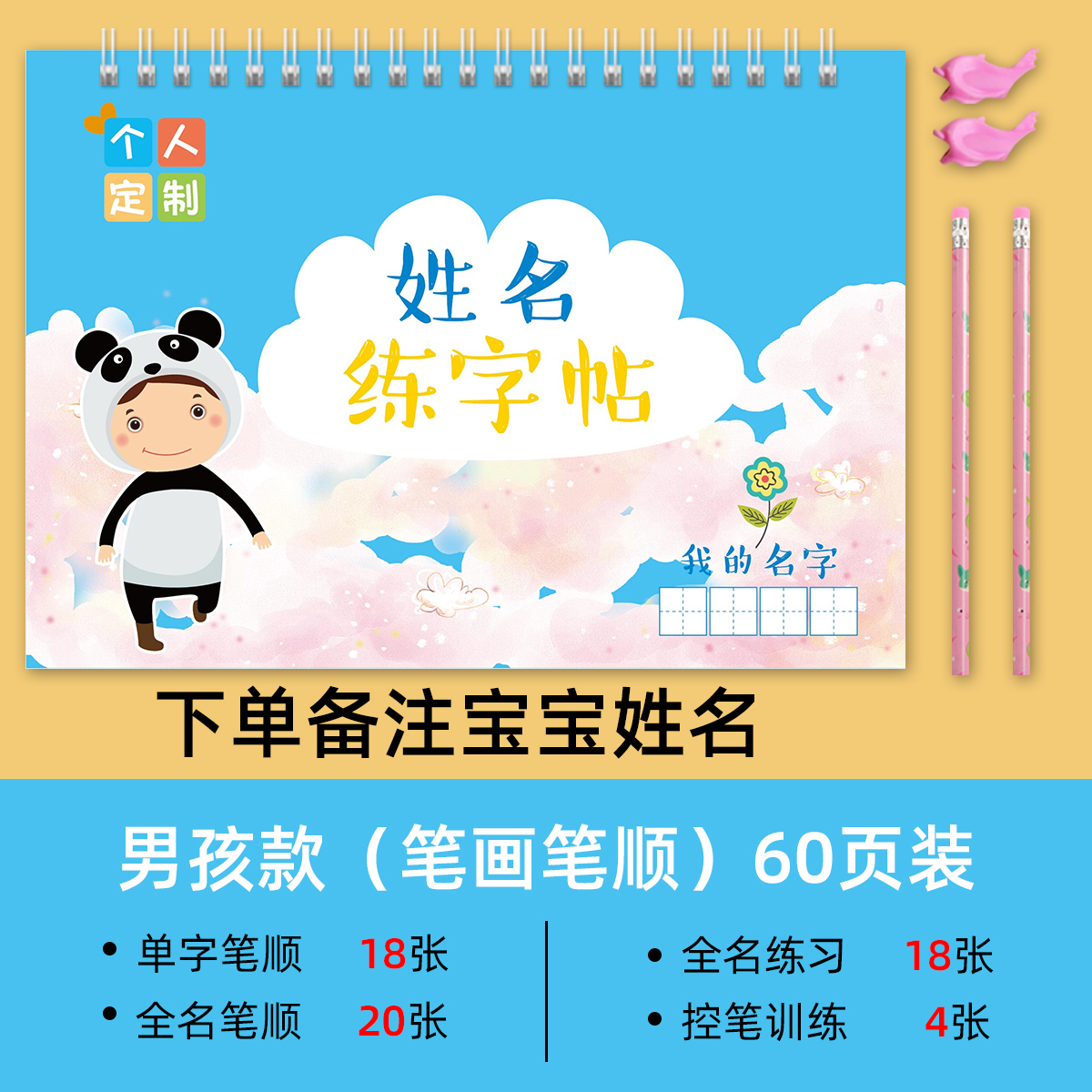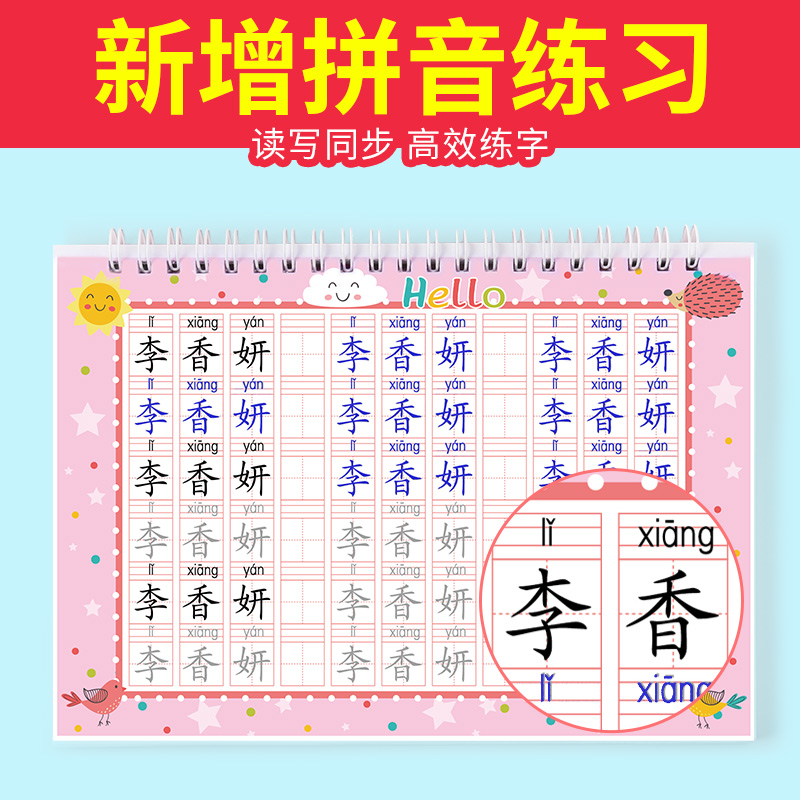 Groove name sticker (with full name stroke order) (remark the baby's name when placing an order) Female model with 32 stroke orders Remarks name Send 2 leads and 2 grips Female model with 50 stroke orders Remarks