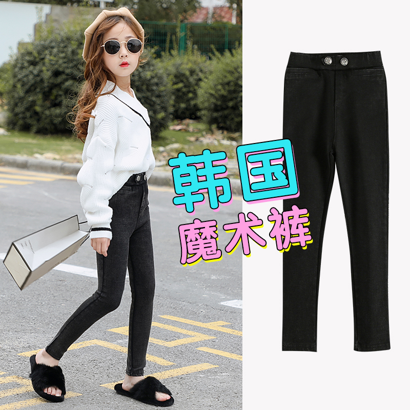 Girls' Denim Cigarette Pants 2022 New Western Style Children's Spring and Autumn Korean Version Black Underpants Medium and Large Children's Pants