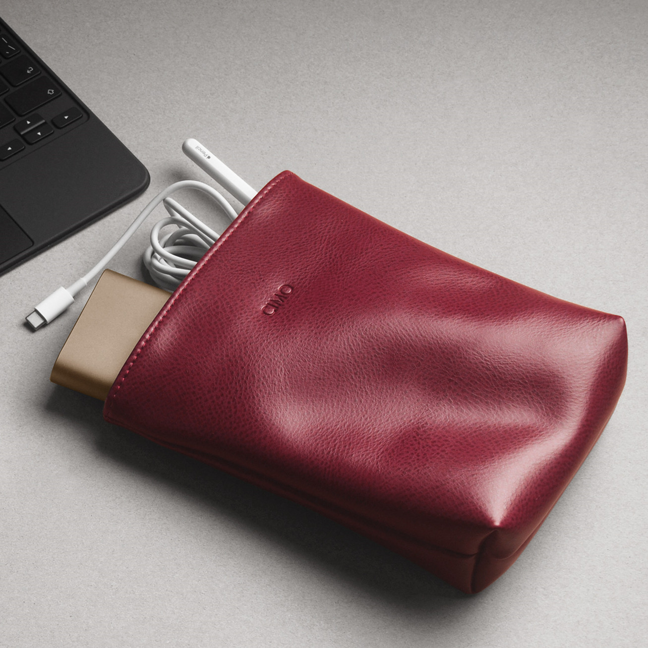 CIMO laptop power storage pack slip rat genuine leather bag data wire accessories headphones U disc protective sleeves black