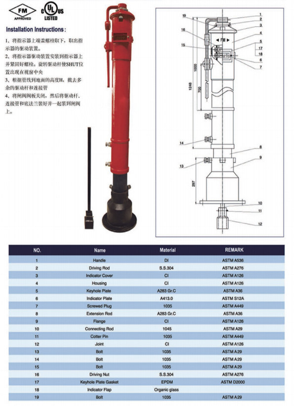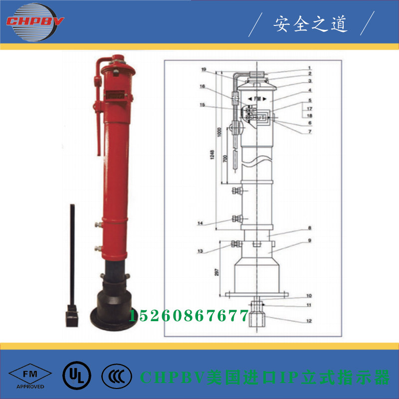 CHPBV US import IP vertical indicator FM UL certified valve position indication column indicator PIV indication valve