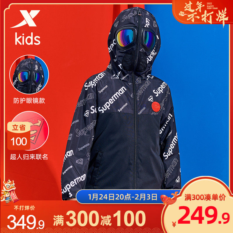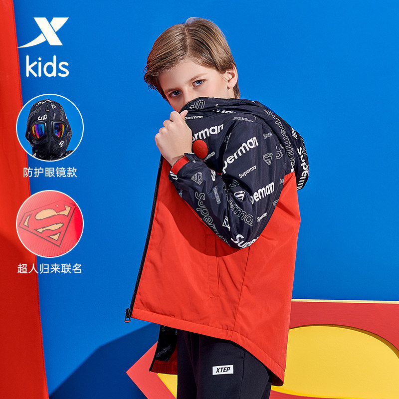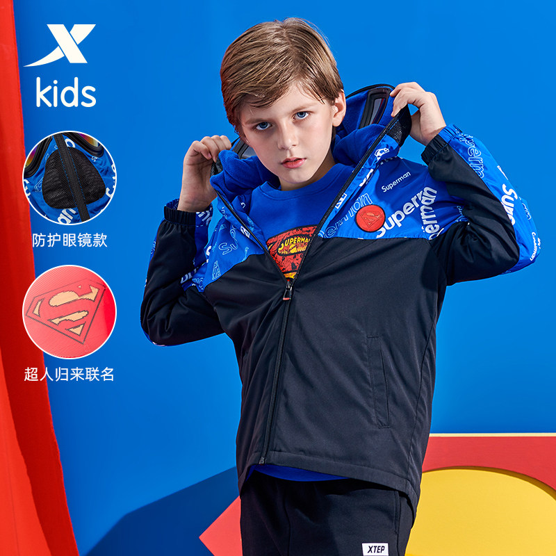 Xtep Children's Boys Coat 2021 Fall/Winter Children's Velvet Trench Coat In Children's Glasses Windbreak Winter Suit
