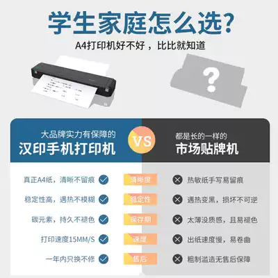 Hanyin MT800 mobile phone printer portable home small Bluetooth portable fan small student home wireless mini mobile connection easy printing wrong question office A4HPRT