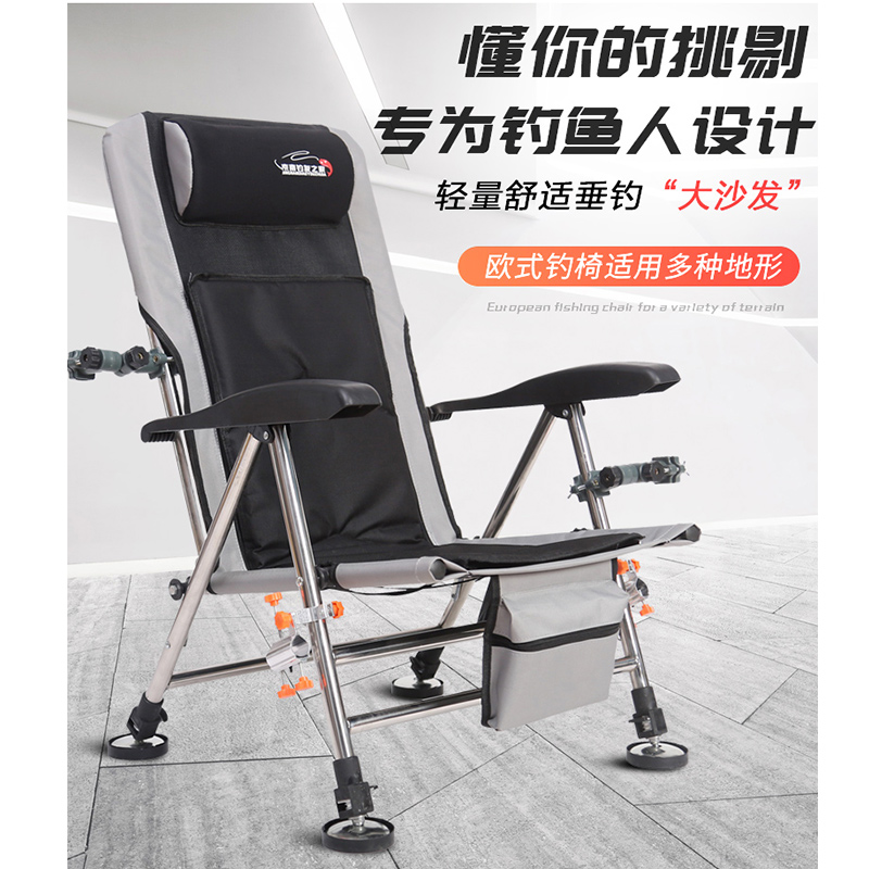 The new European-style fishing chair can lie on all terrain stainless steel ultra-light folding multi-function fishing chair lift platform fishing chair stool