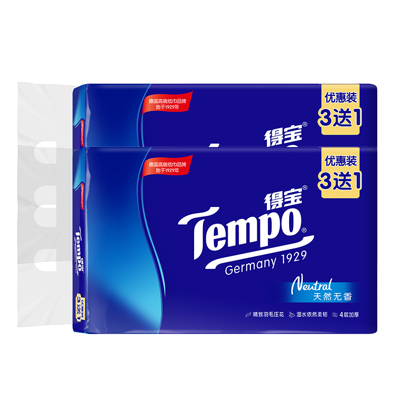 (10 billion subsidies)Tempo Duplo paper soft tissue paper towel 4 layers thickened 90 pumping 8 packs of paper official flag