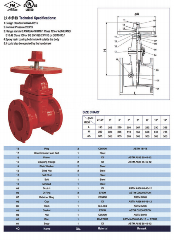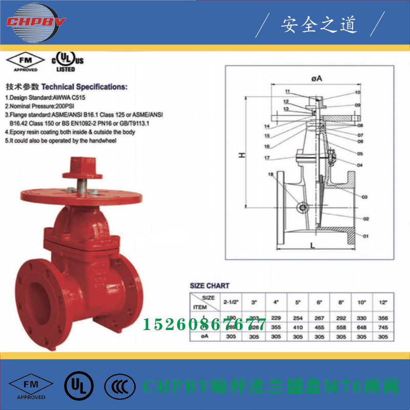 CHPBV American Import Fire Valve FM UL Certified Concealed Lever Flange Disc Gate Valve Concealed Rod Disc Gate Valve