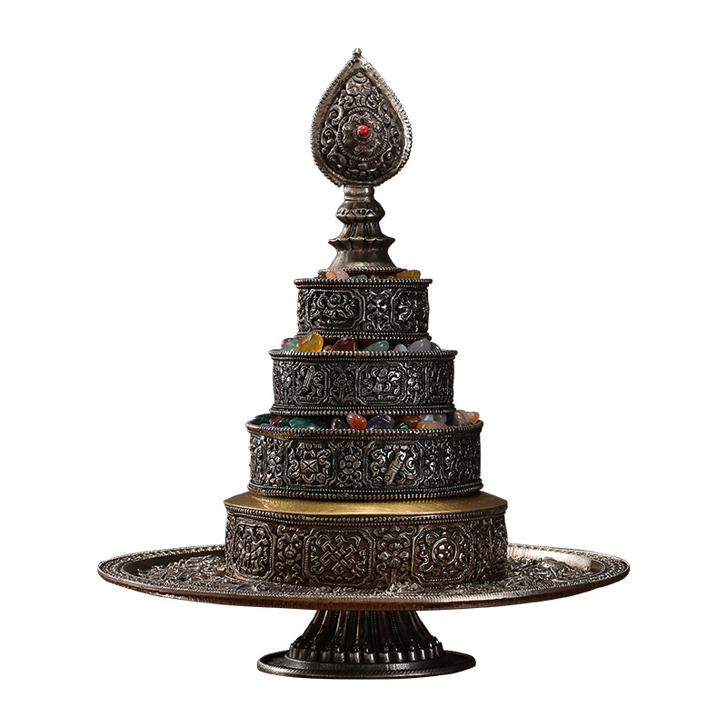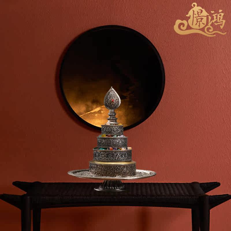 Tibetan silver Manza tray for the collection of the eight auspicious man's tea Roseven jewel 10cm small number for seven precious stones.