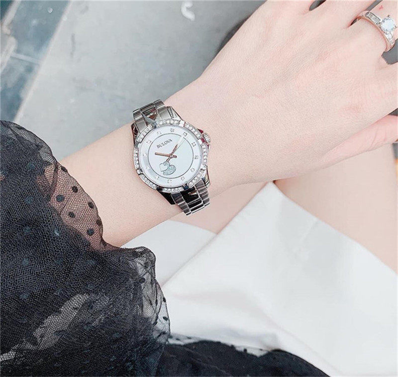 Overseas Bulova Watch Steel Belt Fritillary Disc Crystal Heart Motif Women's Watch 96L226