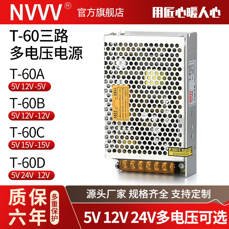 Minwei T-60W three-way multi-voltage -5V 5V 5V 12V 12V -15V 24V 15V 24V power supply LED