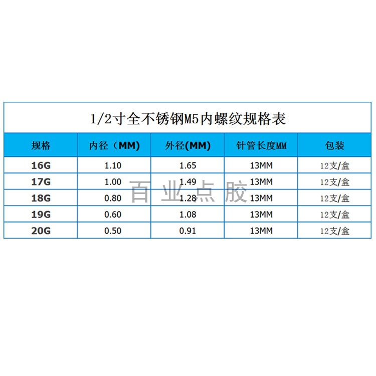 Stainless steel internal thread M5 point glue needle tube length 13MM needle nozzle stainless steel needle metal needle half inch
