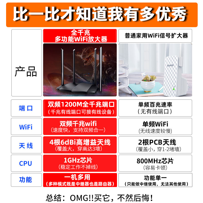 (5G dual-band expansion) full gigabit port wireless WiFi signal booster home network booster wi-fi expansion repeater wife high-power high-speed wf