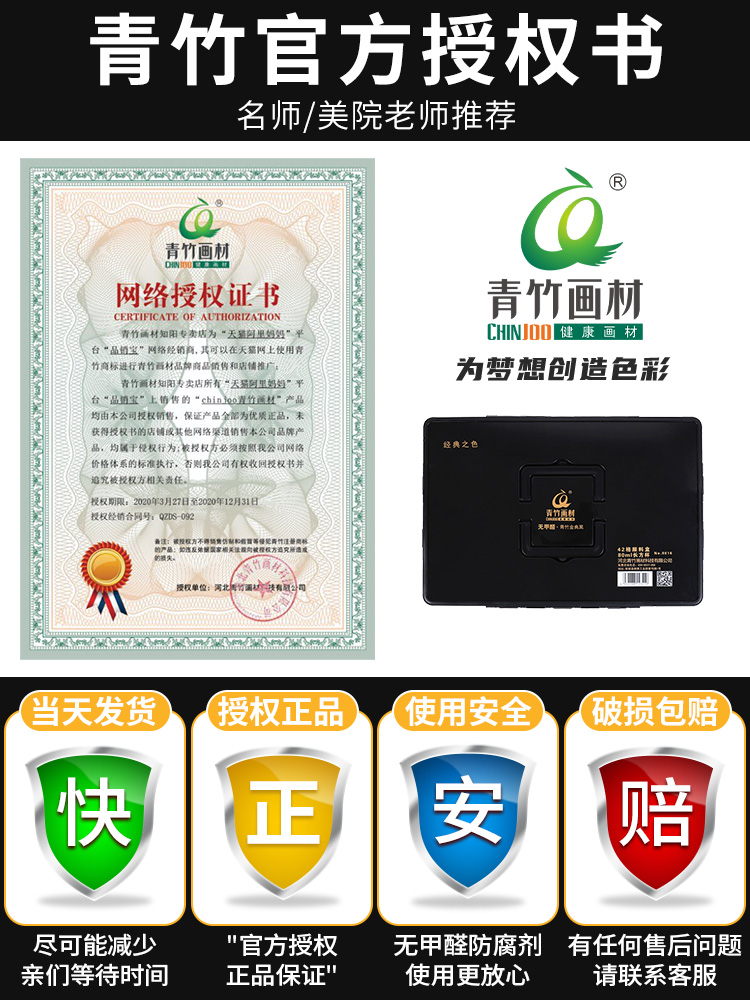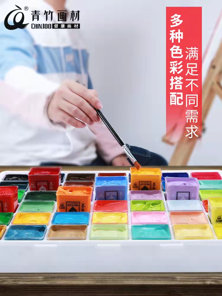 Green bamboo gouache paint set joint exam intensive training art exam classic black streamer white 42 color pigment art student special beginner student gouache painting tool set professional jelly gouache paint