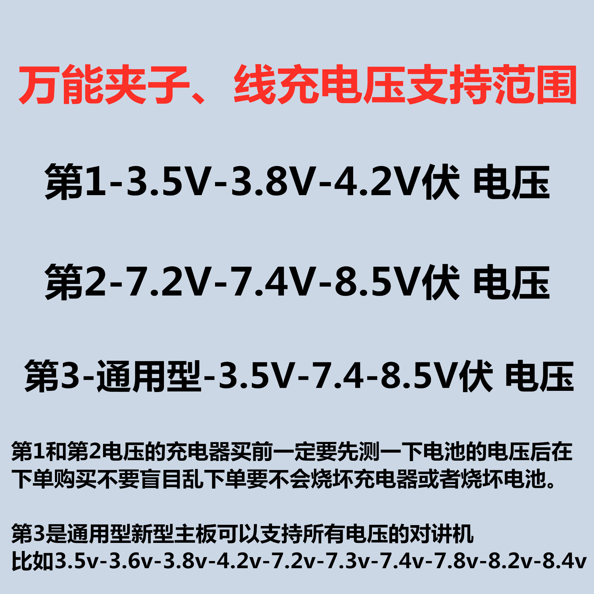 The 1st voltage 3.5-4.2V slow charge 1 - voltage 3.5-4.2V fast charge 2 - voltage 7.2-8.5V slow charge 2 - voltage 7.2-8.5V fast charge 3 - general voltage 3.5-8.5V slow charge 3- general voltage 3.5-8.5V fast charge