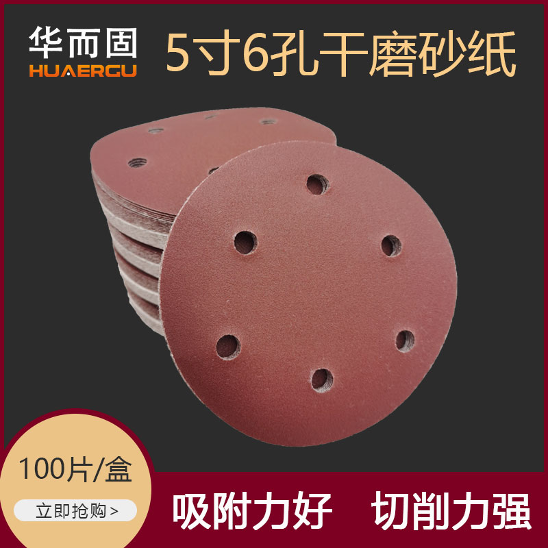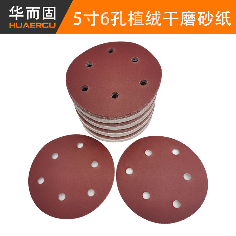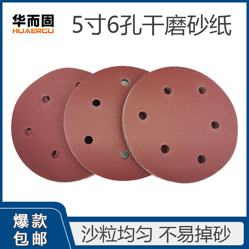 Red 5 inch 6 holes disc flocking sandpaper sheet gas mill dry frosted paper pneumatically polished 6 holes Sharpy 125 sandpaper-Taobao