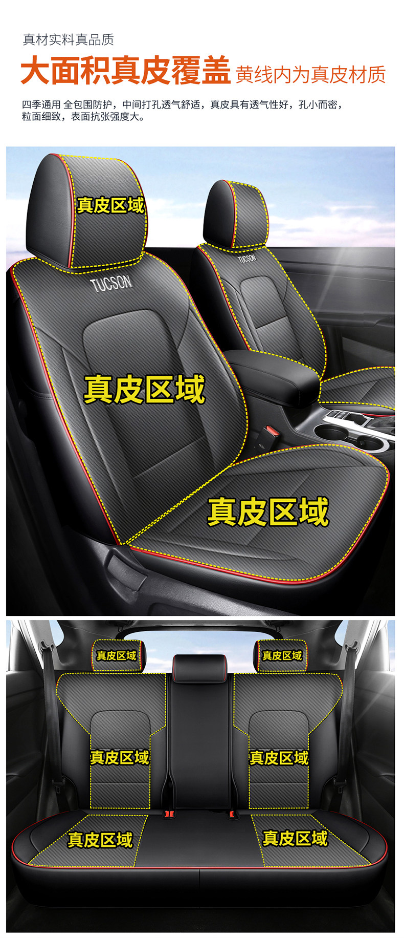 Tucson dedicated - leather black and red (standard) for Tucson - leather full black (standard) for Tucson - leather black coffee color (standard) for Tucson - genuine leather brown (standard) for Tucson - leather black and red (luxury) for Tucson - leather full black (luxury) for Tucson - leather black coffee color (luxury)