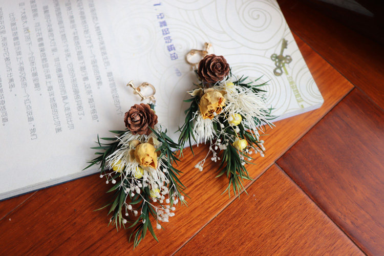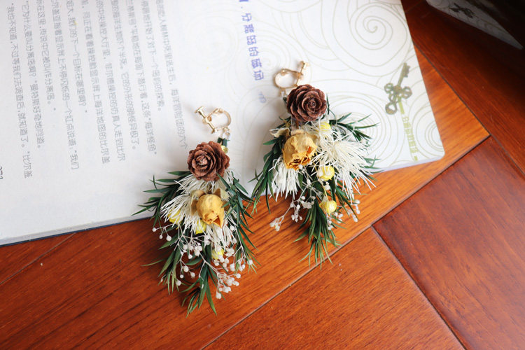 Sen Ensemble Dry Flowers Yonnais earrings natural refreshing floral headwear Bride Hair Accessories for Genuine Holiday Hair Wedding Hairpin