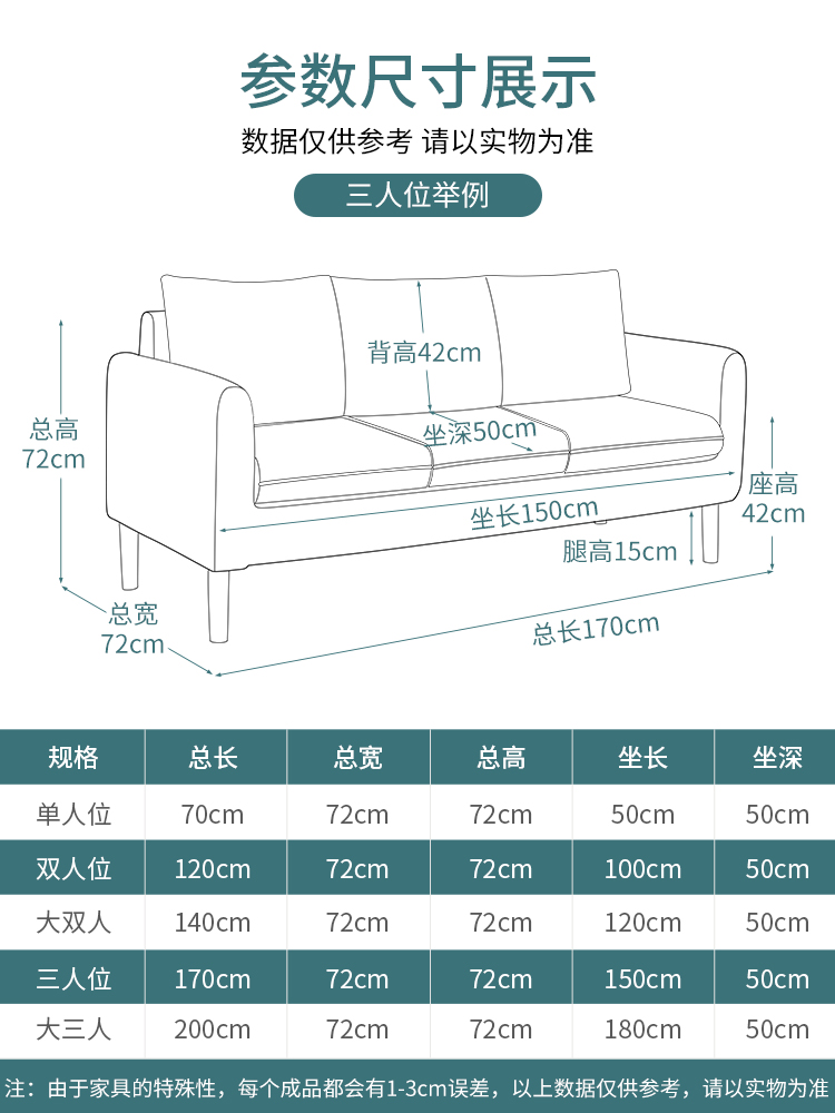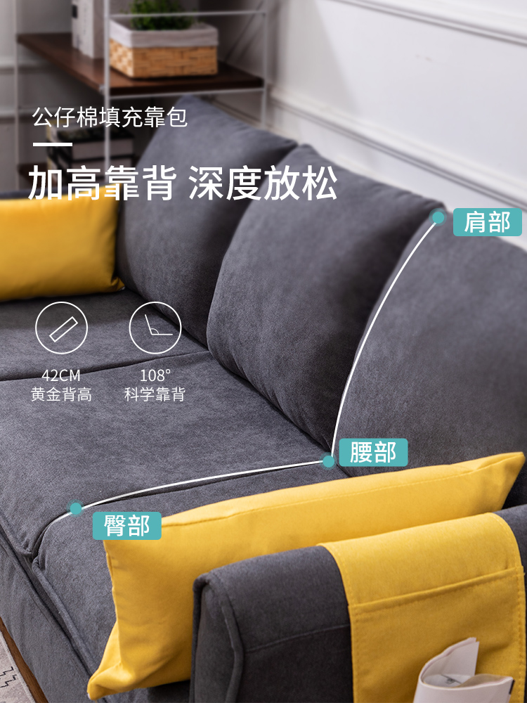 Baolijia Nordic fabric sofa small apartment simple modern small living room rental room three-person apartment simple sofa